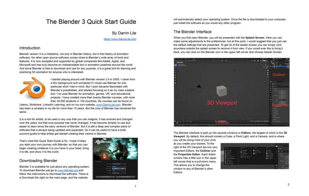 This 23-page PDF will introduce you to Blender's fundamental tools so that you can begin creating with Blender today!